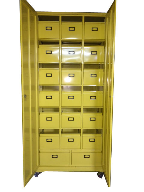 STORAGE CABINET with GLASS and STEEL DOOR Overall Dimension : 72”H x 36”W x 18”D |